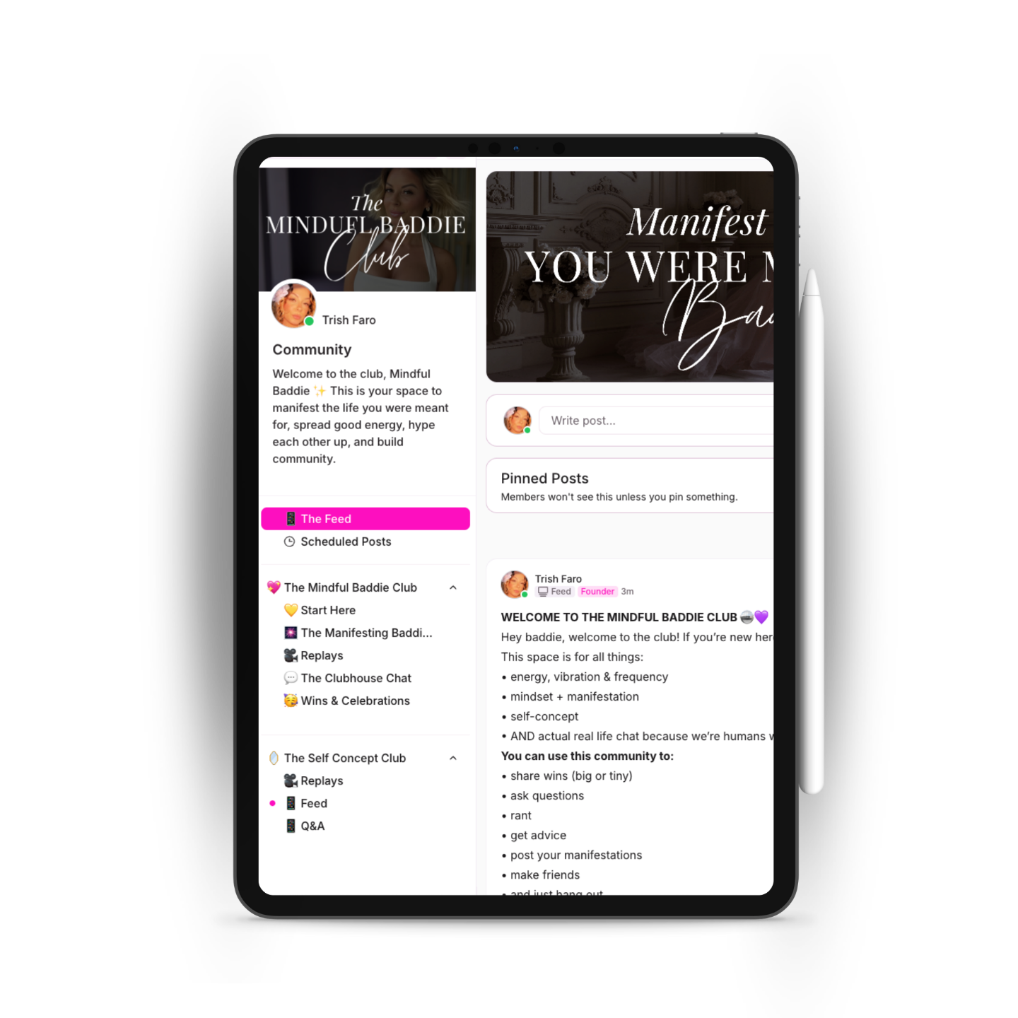 Our private space to connect with like-minded baddies, get support, celebrate wins, and be surrounded by the right people. We talk manifestation, frequency, self-concept, etc.