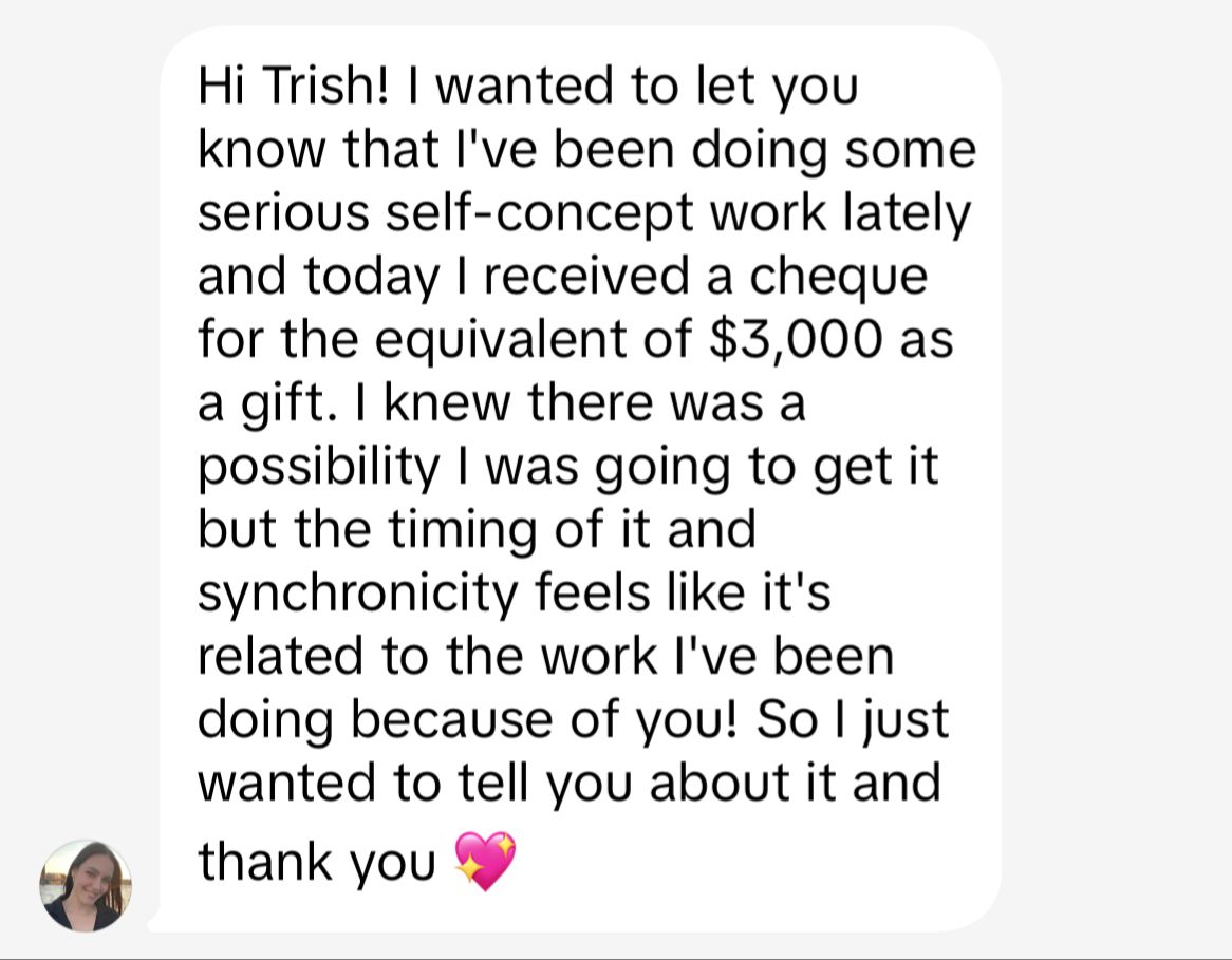 "Trish is the fairy godmother of self-concept and manifestation, my life has completely changed and I cannot thank her enough"